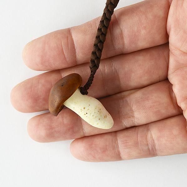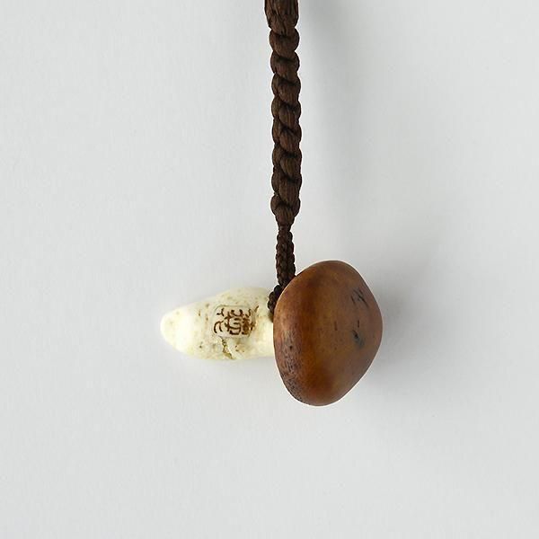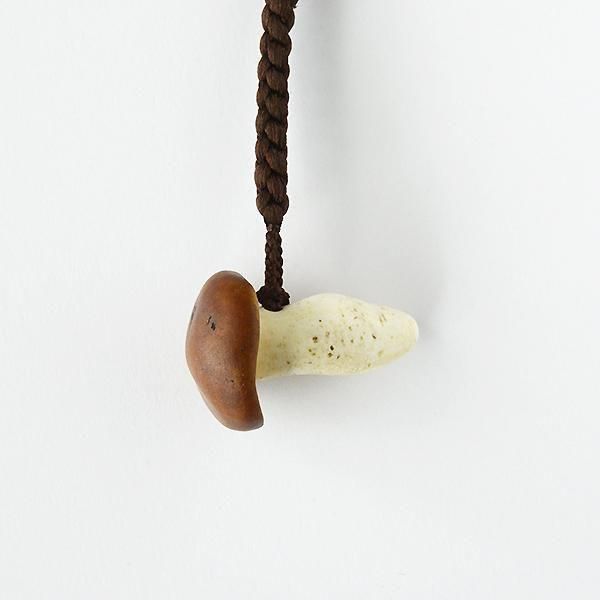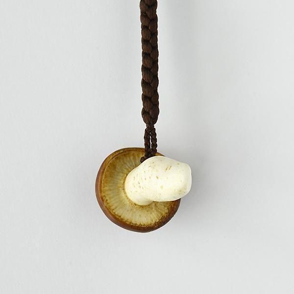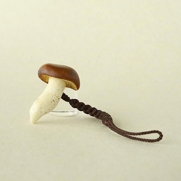 占地(しめじ)を株からひとつパッともいだ感じの提げ。遊び心たっぷり。