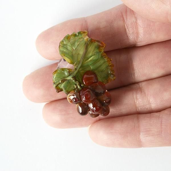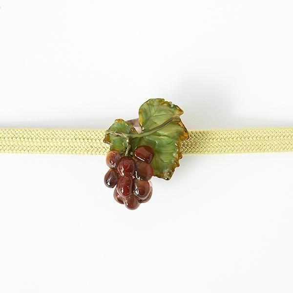 長野県で生まれた赤葡萄のクィーンルージュをイメージして制作した葡萄の帯留です。